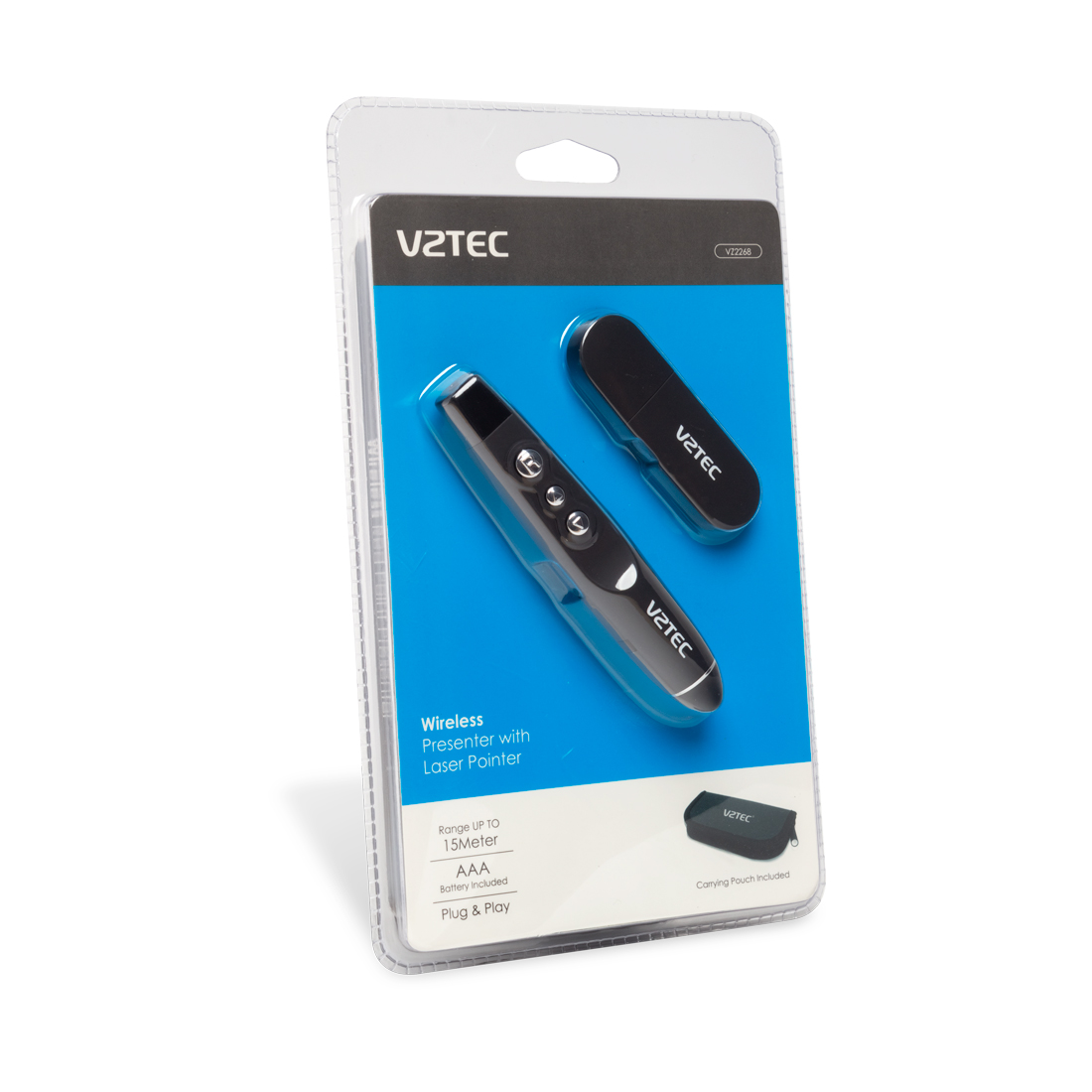 Благодаря использованию технологии, работающей на частоте 2.4 ГГц, сможете оценить свободу перемещений и возможность более плотной работы с аудиторией, усиливающие впечатления от презентации. Радиус действия презентера до 15 метров. Кнопки легко распознать на ощупь во время презентации, благодаря эргономичной форме устройство удобно держать в руке. Не требует установки дополнительных программ, просто подключите приёмник к USB-порту можно приступать к работе. После работы приёмник можно будет убрать внутрь корпуса. Также в комплекте поставляется чехол для хранения и транспортировки, во время командировок. Батарейки в комплект не входят.