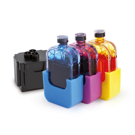 Специально разработан для самостоятельной заправки струйных картриджей. Заправочный комплект состоит из заправочной станции и контейнера с чернилами. Чтобы заправить картридж, нужно поместить его в заправочную станцию, набрать чернила в шприц и заполнить картридж через отверстие в заправочной станции. Всё очень просто, а главное надёжно.
