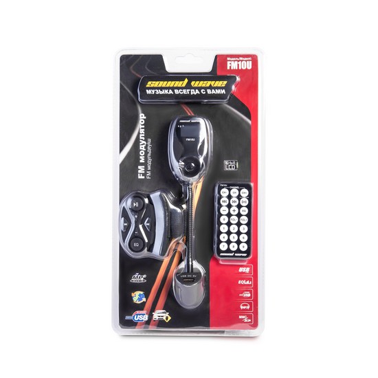 Модулятор Sound Wave FM10U поставляется вместе с пультом управления и опцией "мультируль", которые позволят вам, управлять прослушиванием вашей любимой музыки не отвлекаясь от процесса вождения. Также добавлен USB порт для зарядки цифровых устройств.