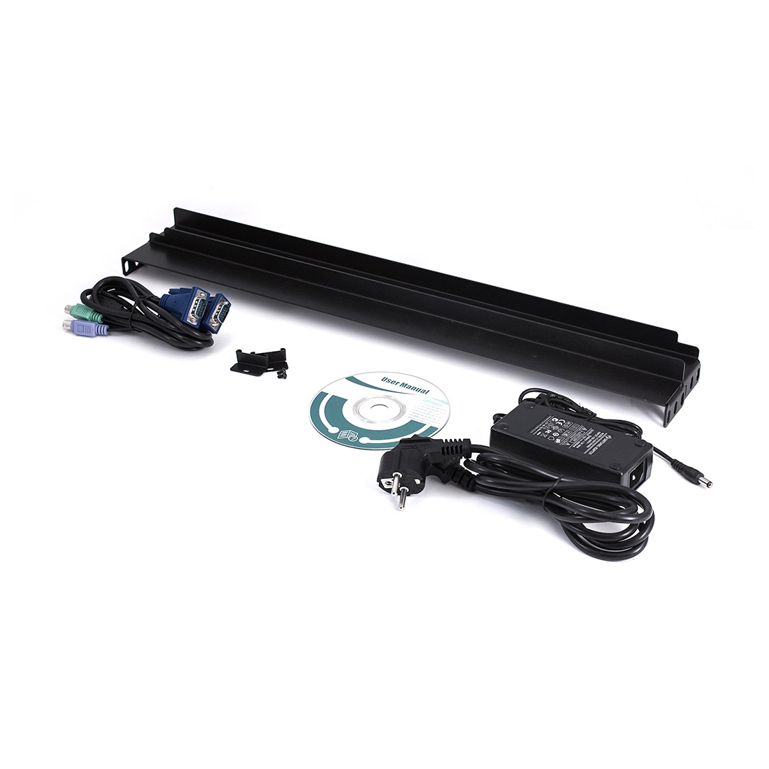 KVM консоль с 17" ЖК-дисплеем идет в выдвижном корпусе с зазорами сверху и снизу, которые обеспечивают удобство установки в стойке высотой 1U