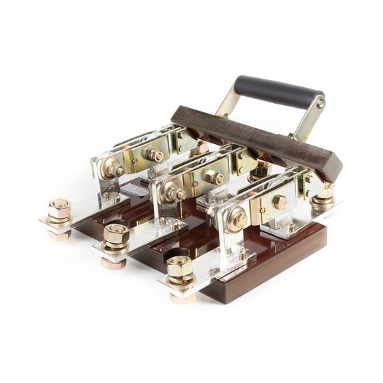Это низковольтный выключатель с открытыми ножевыми контактами с видимым местом разъединения электрической цепи.