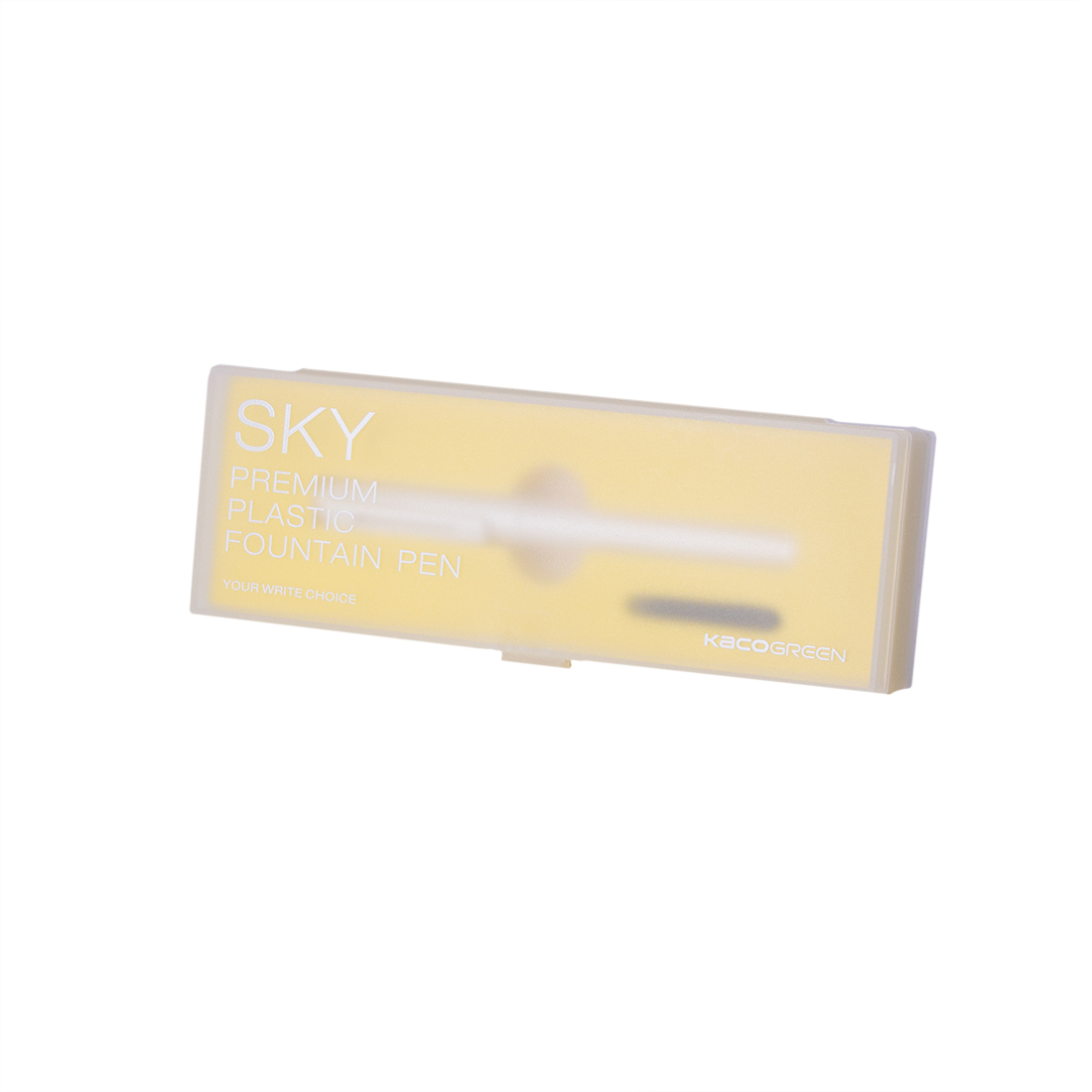 Ручка изготовлена из экологически чистого поликарбоната и ABS-пластика. Стоит заметить, что ручка очень легкая и удобно располагается в руке, благодаря немного суженой форме к низу.На ручке можем увидеть буквы «F», которая соответствует названию SKY Premium PlasticFountainPen и «KG» - KacoGreen. Длина ручки составляет 136 мм, диаметр -12.2 мм.