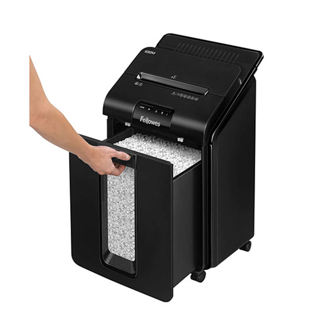 Уничтожитель AutoMax 100M c автоподачей и с размером фрагмента 4x10 мм идеально подходит для уничтожения повседневных документов, содержащих коммерческую тайну или персональную информацию