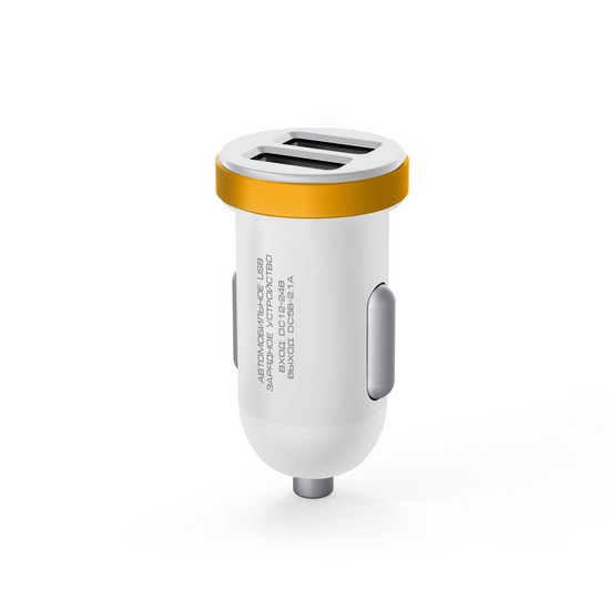 Удобное устройство для зарядки мобильных устройств в машине с двумя USB выходами конвертирует входное напряжение автомобильного прикуривателя 12-24В в стандартное напряжение для USB устройств 5В.